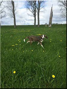 Unser 13 Jahre alter Hundeopa Watson wurde Anfang 2015 umherirrend auf der Straße aufgegriffen und ins Tierheim gebracht. Watson war bis auf die Knochen abgemagert, seine Rippen und auch die Hüftknochen standen hervor, das Fell stumpf und verklebt, seine Haut war übersät mit Krusten und Schuppen, Augen und Ohren waren entzündet und an seiner Brust hatte er eine faustgroße Geschwulst und es fehlten fast alle Zähne. Nur sehr mühsam konnte er sich auf den Beinen halten. Sein Halsband war uralt, die Schnalle bestand nur noch aus Rost und daran hing ein großer, ebenfalls verrotteter Karabinerhaken, mit dem Rest einer erbärmlichen Kette. Watson war völlig am Ende, denn dort, wo er vorher lebte, hatte man ihn vergessen, und die alte Kette hatte endlich ihren Dienst versagt. DIE Chance für Watson diesem Leben ein Ende zu setzen und zu laufen, laufen, laufen... in die Freiheit.